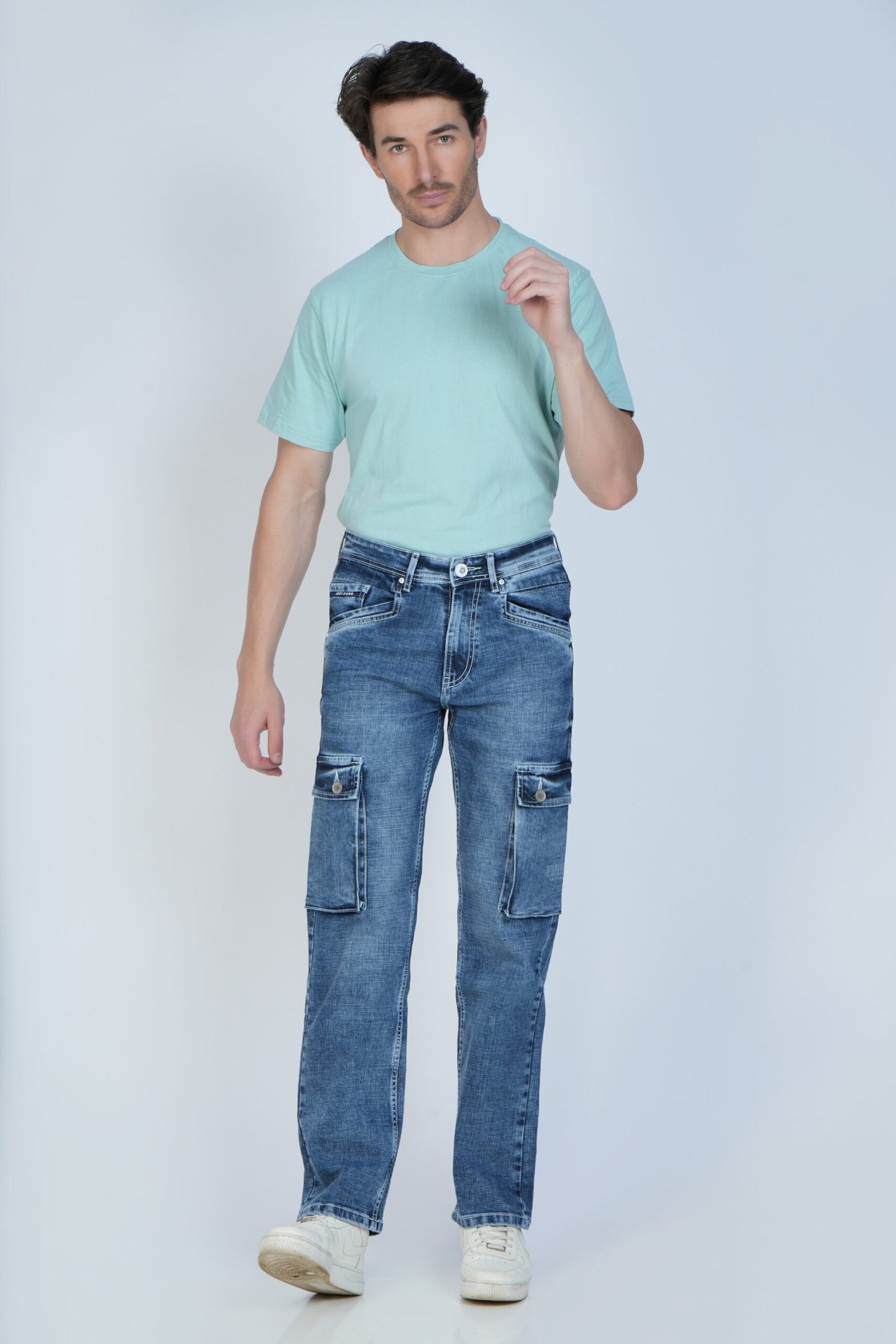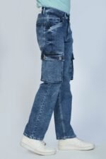 straight fit denim jeans, modern cargo style jeans, designer denim jeans men, casual streetwear denim, men’s fashion denim pants,