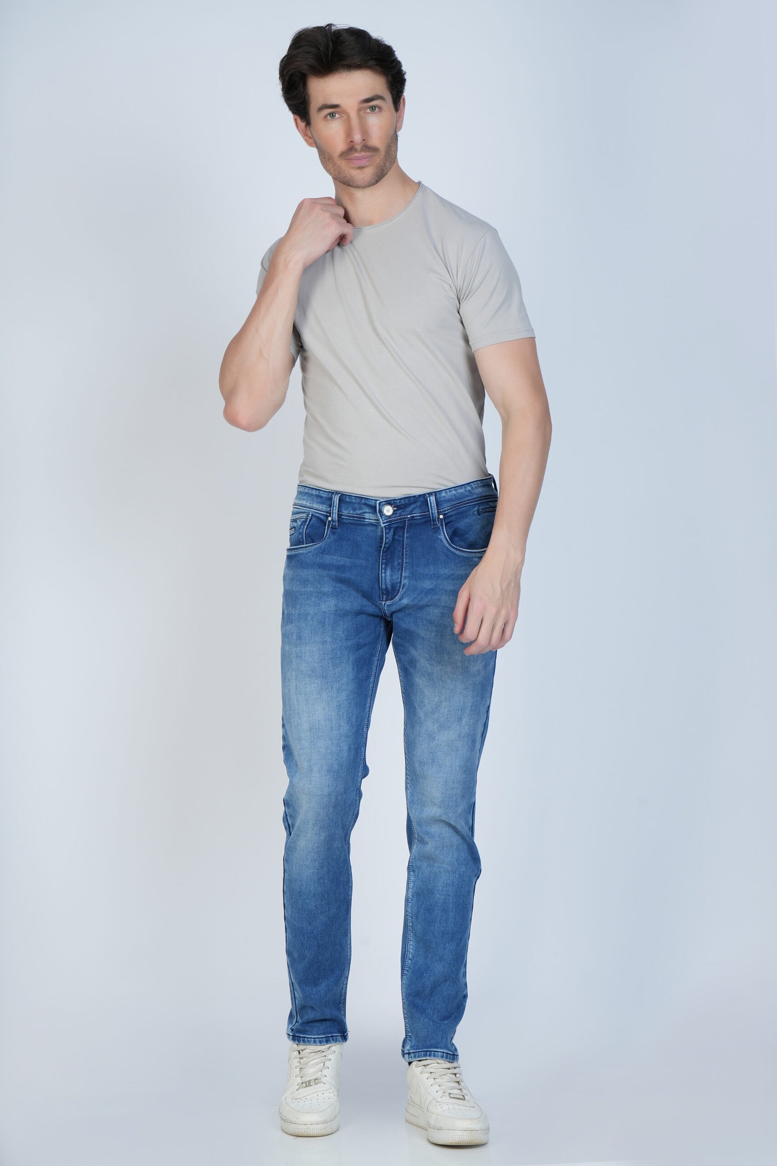 Refresh your everyday wardrobe with these light blue washed stretch denim jeans for men, crafted for comfort, durability, and effortless style.