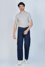 Dark Blue Anti-Fit Denim Cargo Jeans for Men – Raw Attitude, Utility Style