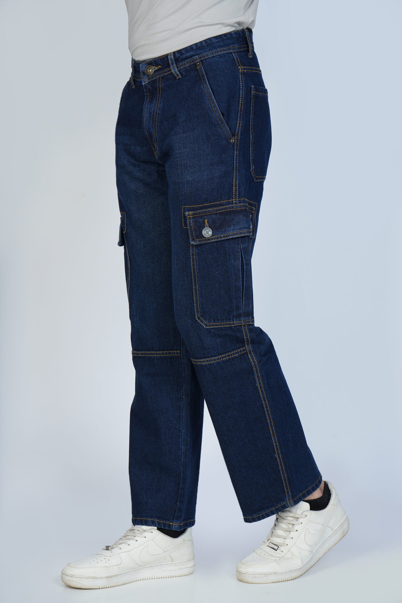 Built for those who like their denim bold and unapologetic, these dark blue anti-fit cargo jeans redefine everyday streetwear.