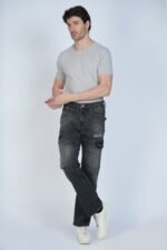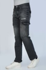 Black Washed Anti-Fit Denim Cargo Jeans for Men – Rugged Utility, Modern Edge
